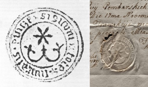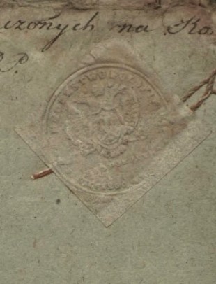 Stempel "suchy" uzyty w Pilicy w roku 1811. Widoczny odcisk dwugłowego orła.