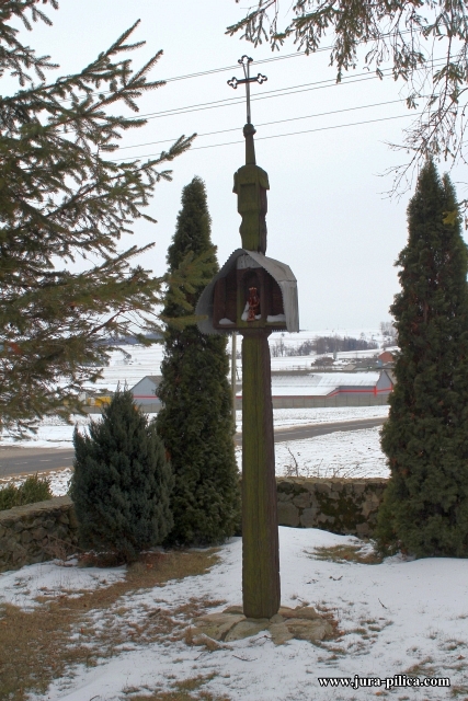 4.1 wśród zabudowy wsi - rzeźbiony krzyż drewniany przy kaplicy Matki Boskiej Częstochowskiej