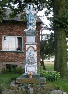 21.9 W ogrodzie gospodarstwa nr 73 figura Matki Bożej Niepokalanie Poczętej z 1920r. fundowana przez rodzine Kotnisów